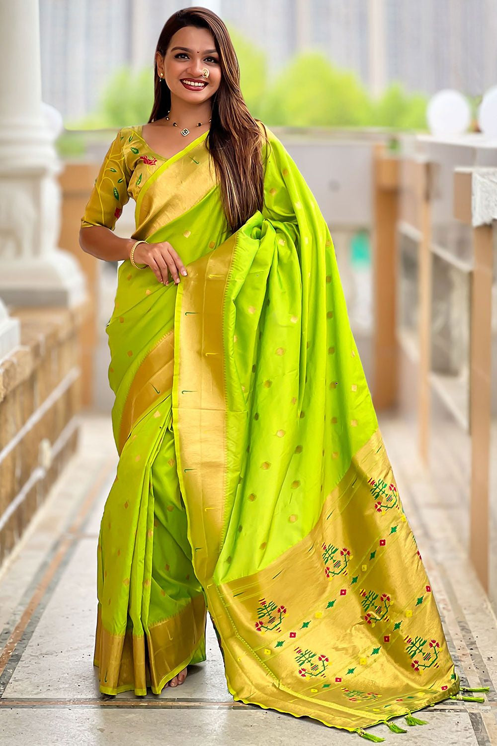 Green Sleek Paithani Silk Saree With Blouse SFPRF251305