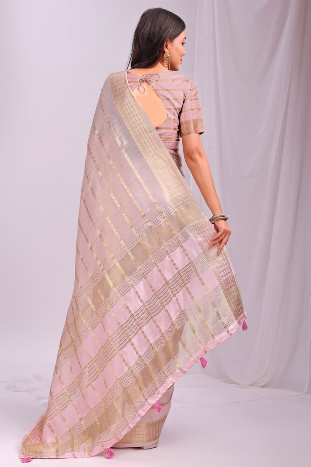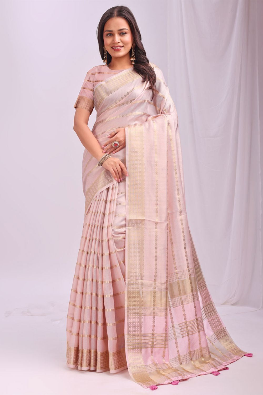 Peach Sleek Organza Casual Sarees With Blouse SFAST11503