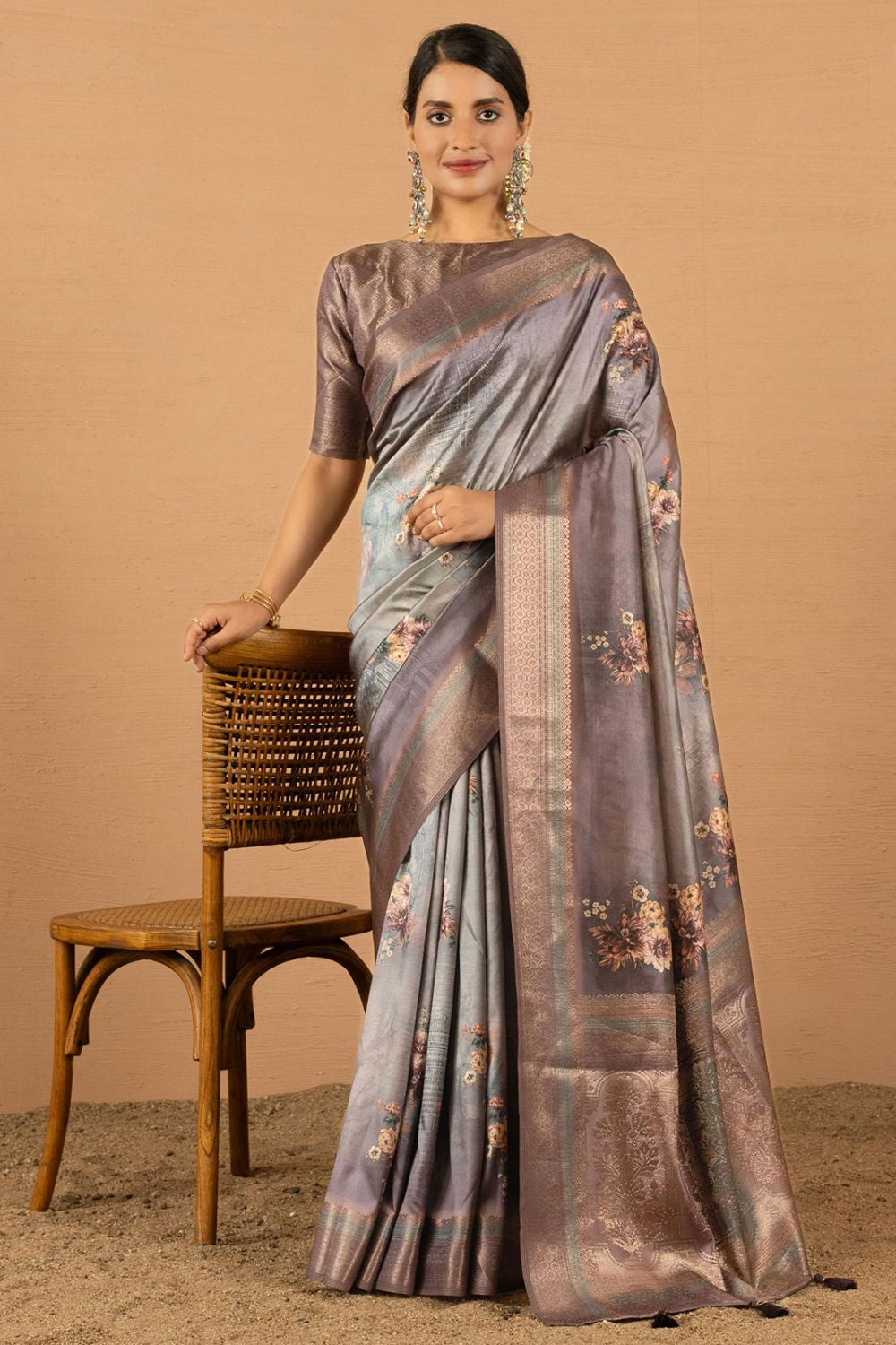 Make a striking statement with this Jacquard Silk Saree, featuring intricate digital printed work that adds a modern twist to classic elegance.