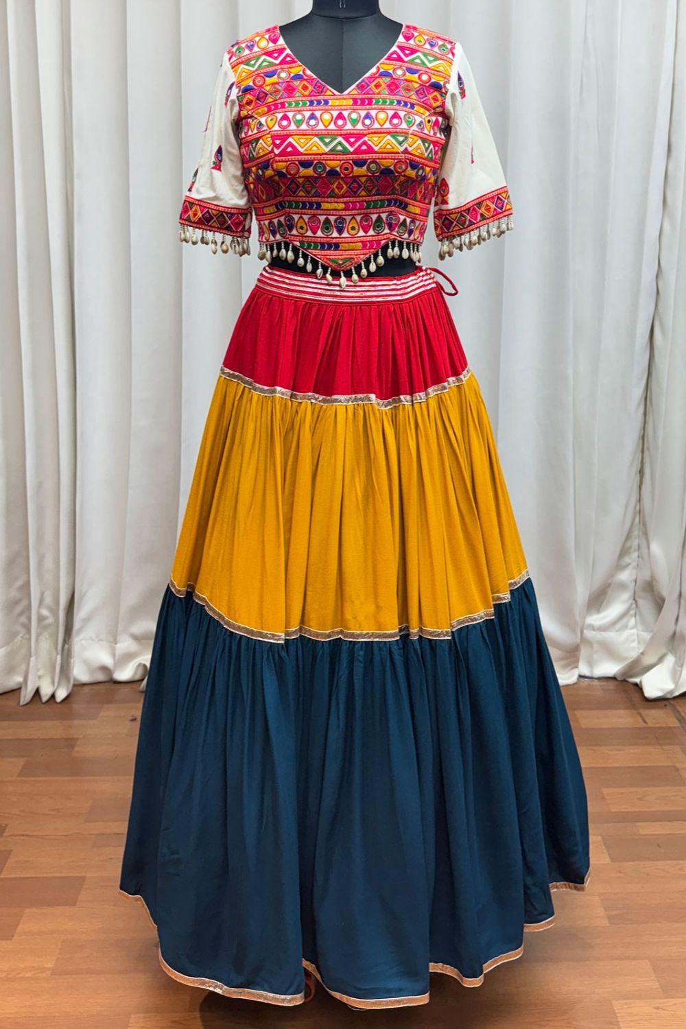 Celebrate Navratri in style with the Viscose Cotton Chaniya Cholis from Siya Fashions. Crafted from soft viscose cotton, this outfit offers both comfort and elegance throughout your festivities.