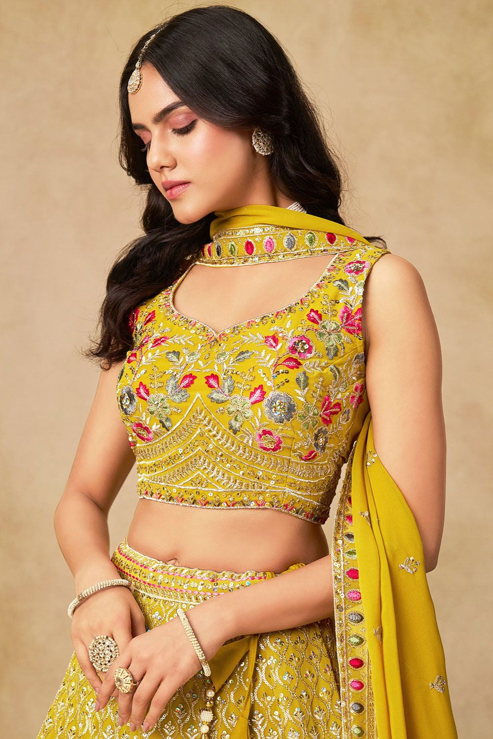 Yellow Georgette Sangeet Party Lehenga Choli SFZC5405