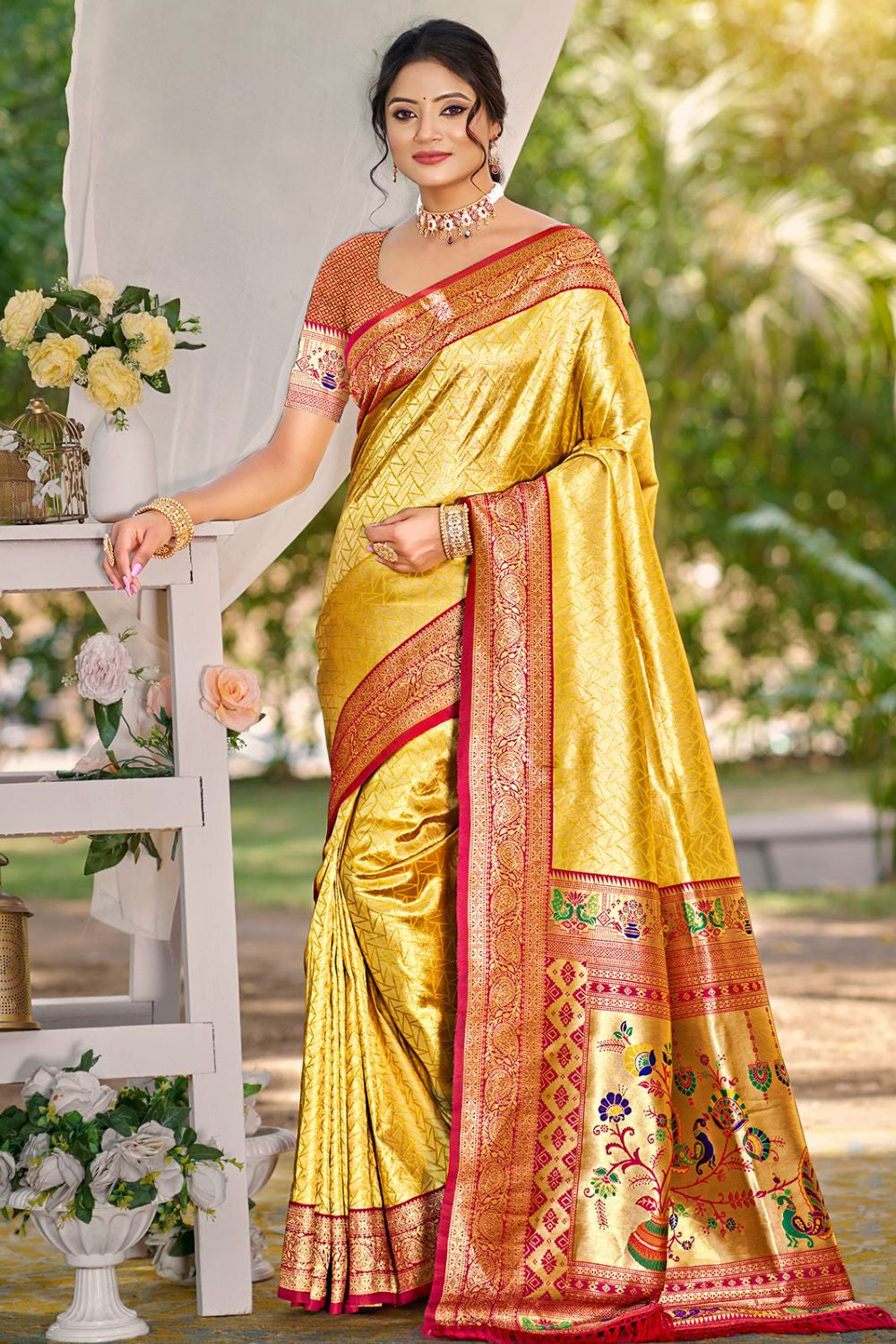 Yellow Kanjivaram Silk Wedding Sarees With Blouse SFSGM119005